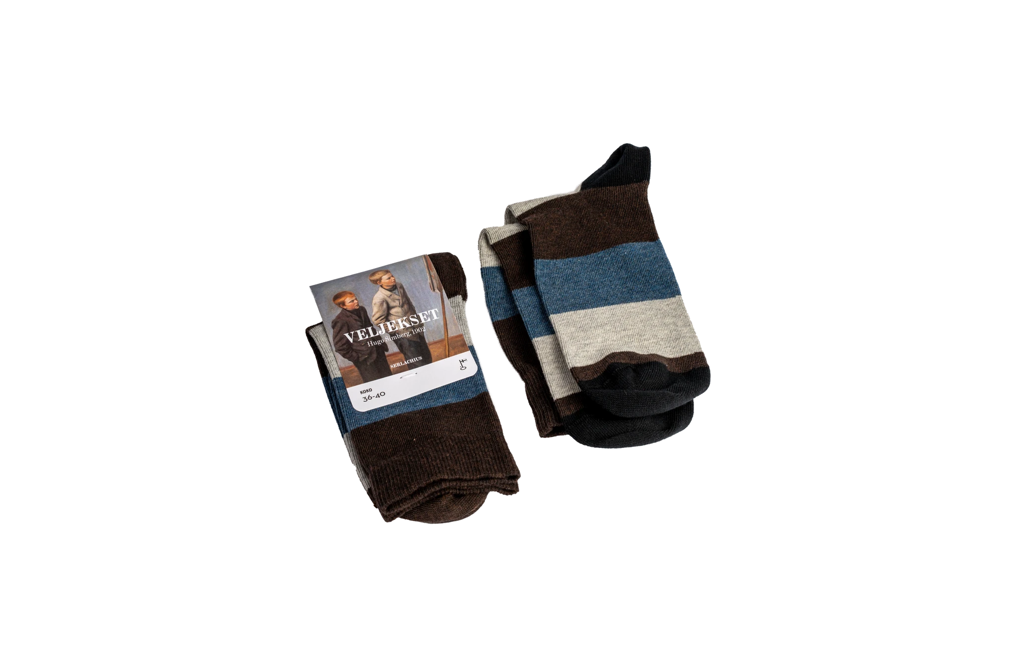 Öko-tex -materiaali sekä Avainlipputuote -merkinnät. Valmistanut Serlachius-museoille Sidoste Oy, Tampere.
