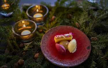 Joululounaalla on tarjolla kolmen ruokalajin kokonaisuus. Voit valita vaihtoehdoista mieleisesi alku- ja pääruoan sekä jälkiruoan.